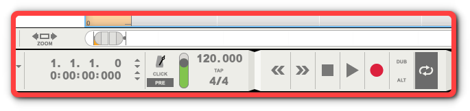 Reason Studio Transport panel