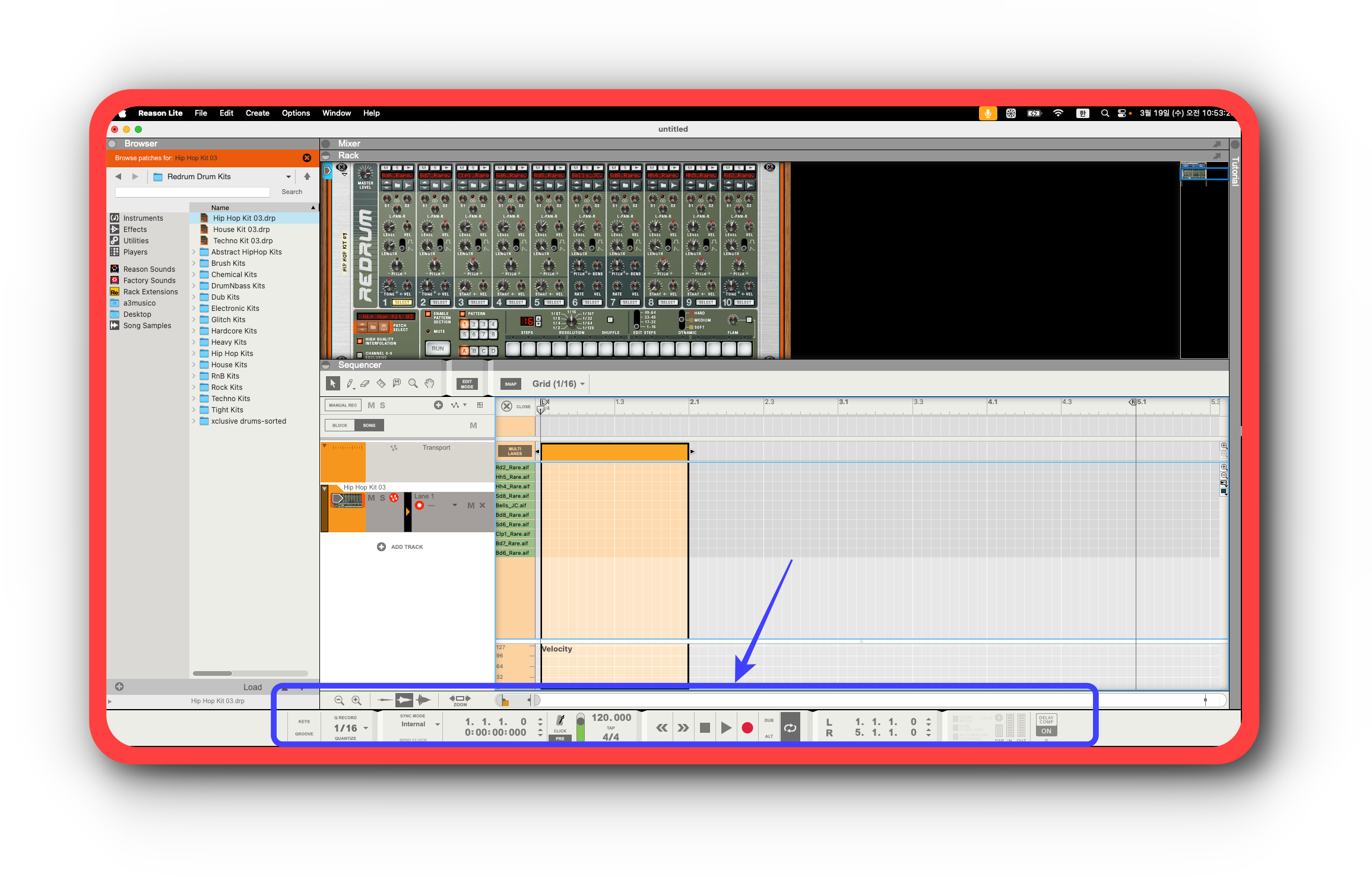 그리고 120BPM도 설정 완료!!! 이제는 그다음으로 8마디 드럼을 먼저 만들어 보자. 여러 방법이 있지만 일단 8마디 드럼을 만들어 보려면 "천리길도 한 걸음부터!!!라고 했지!!!" 1 마디의 드럼을 먼저 완성해 보자. 아래 영상을 참고해서 개념을 익혀두자.